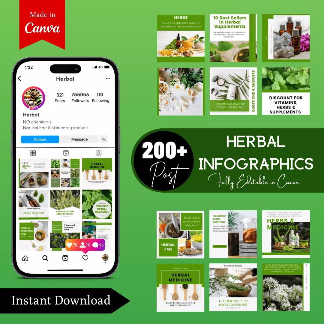Herbal Infographic Ready to Post Canva Editable Templates